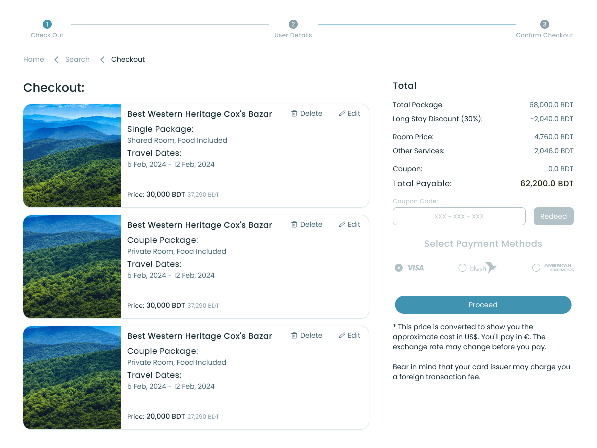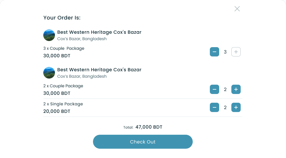 An intuitive system for managing your travel choices with an easy add-to-cart feature.