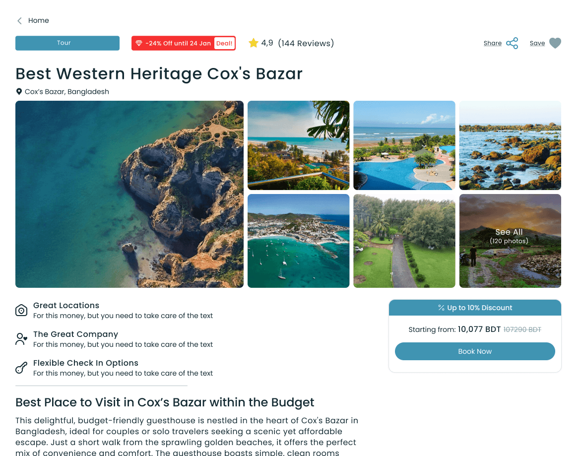 At Ghuddy, we focus on simplifying travel bookings, allowing travelers to easily find and book suitable facilities while tailoring their journeys. Our intuitive platform ensures a straightforward navigation experience from search to payment, emphasizing ease and transparency at every step.