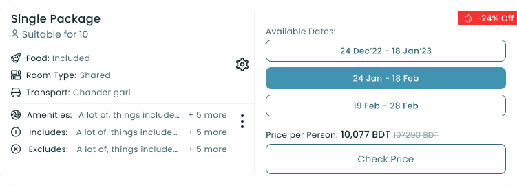 A visual showcase of tailored travel options with essential information and attractive discounts.